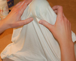 4. Cover your entire work area with newspapers. This is going to be messy! Pour some fabric stiffener or starch into a bowl. Saturate your white cloth in the fabric stiffener. Make sure it is all covered.